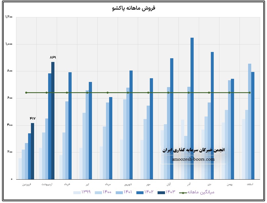 در فروردین ماه سال 1403 فروش زیر مجموعه نماد پاکشو ( پاکان به شو ) 150 میلیارد تومان بوده است و مجموع فروش شرکت را به 567 میلیارد تومان میرساند.