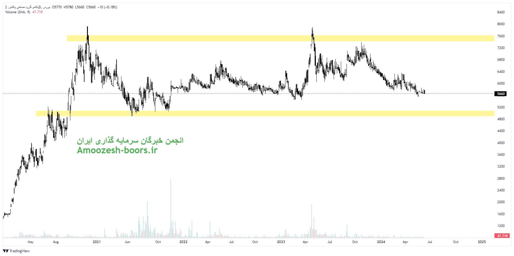 نزدیکترین حمایت به سهم پاکشو ناحیه ۵۰۰۰ ریال در نظر گرفته شده است لذا در صورت ایجاد تقاضا در کلیت بازار مهمترین مقاومت در مسیر صعودی ناحیه ۷۵۰۰ ریال در نظر گرفته خواهد شد.