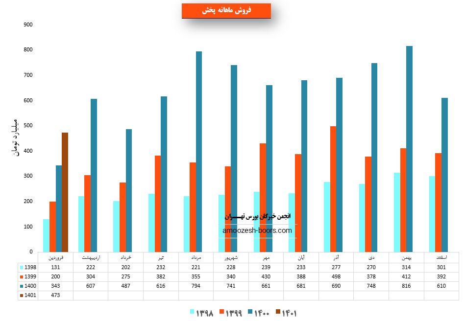 فروش سهم پخش: 7792 میلیارد تومان که نسبت به دوره مشابه گذشته 80% افزایش یافته است.
