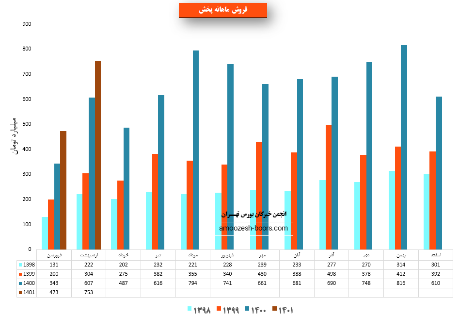 سهم پخش در اردیبهشت ماه ۱۴۰۱ حدود مبلغ 753 میلیارد تومان درآمد داشته که این میزان در مقایسه با ماه گذشته 59% و همچنین در مقایسه با مدت مشابه سال گذشته 24% افزایش پیدا کرده است.