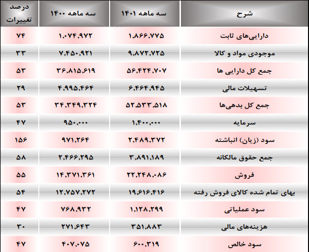 سود ناخالـص: 978 میلیارد تومان که نسبت به دوره مشابه گذشته 80% افزایش یافته است.