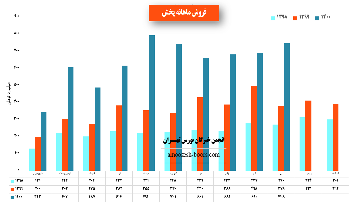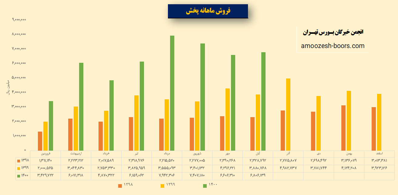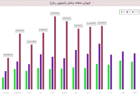 لازم به ذکر است که سهم پخش در سال 1400 به طور میانگین ماهانه 637 میلیارد تومان درامد داشته که در دی ماه بیشتر از میانگین درامد ماهانه خود درامد کسب کرده است.