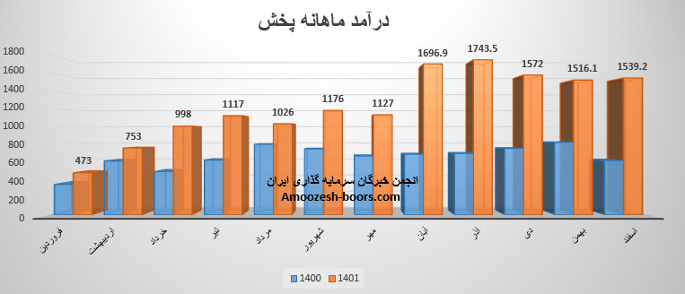 مجموع عملکرد 12 ماهه نماد پخش نسبت به سال قبل 89% افزایش داشته.