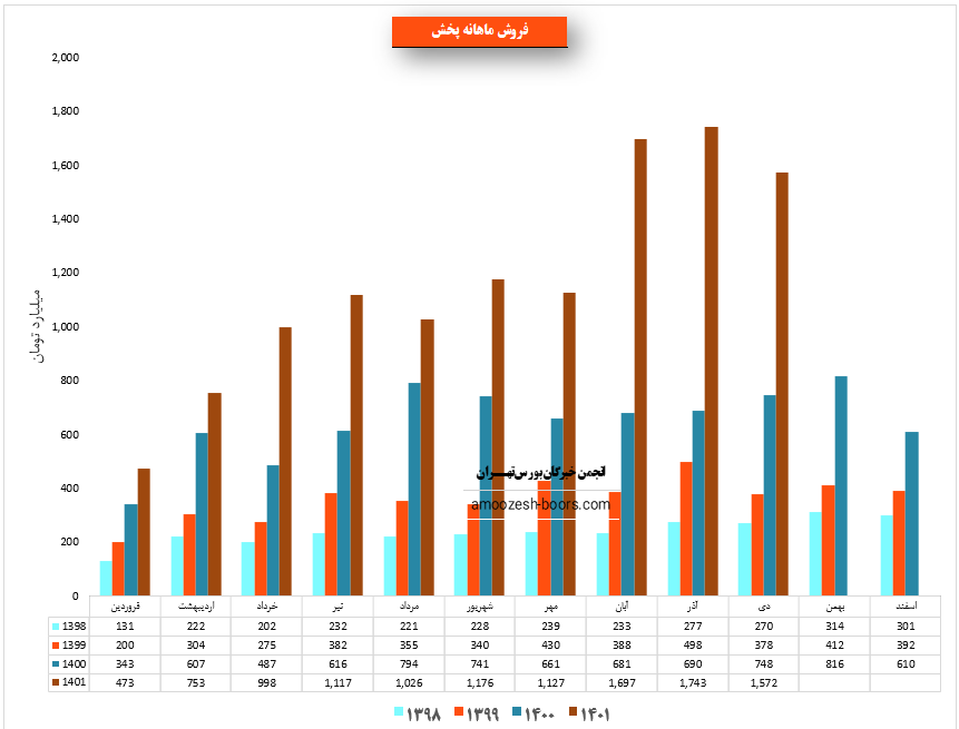 شرکت پخش البرز (نماد پخش) در گزارش فعالیت ماهانه آذر 1401 به درآمد 1743.5میلیارد تومانی دست یافت .پخش به واسطه افزایش نرخهای صنعت دارو رشد درآمدی خوبی را تجربه نموده است و موفق به ثبت رکورد تازه ای در درآمد ماهانه گردید.