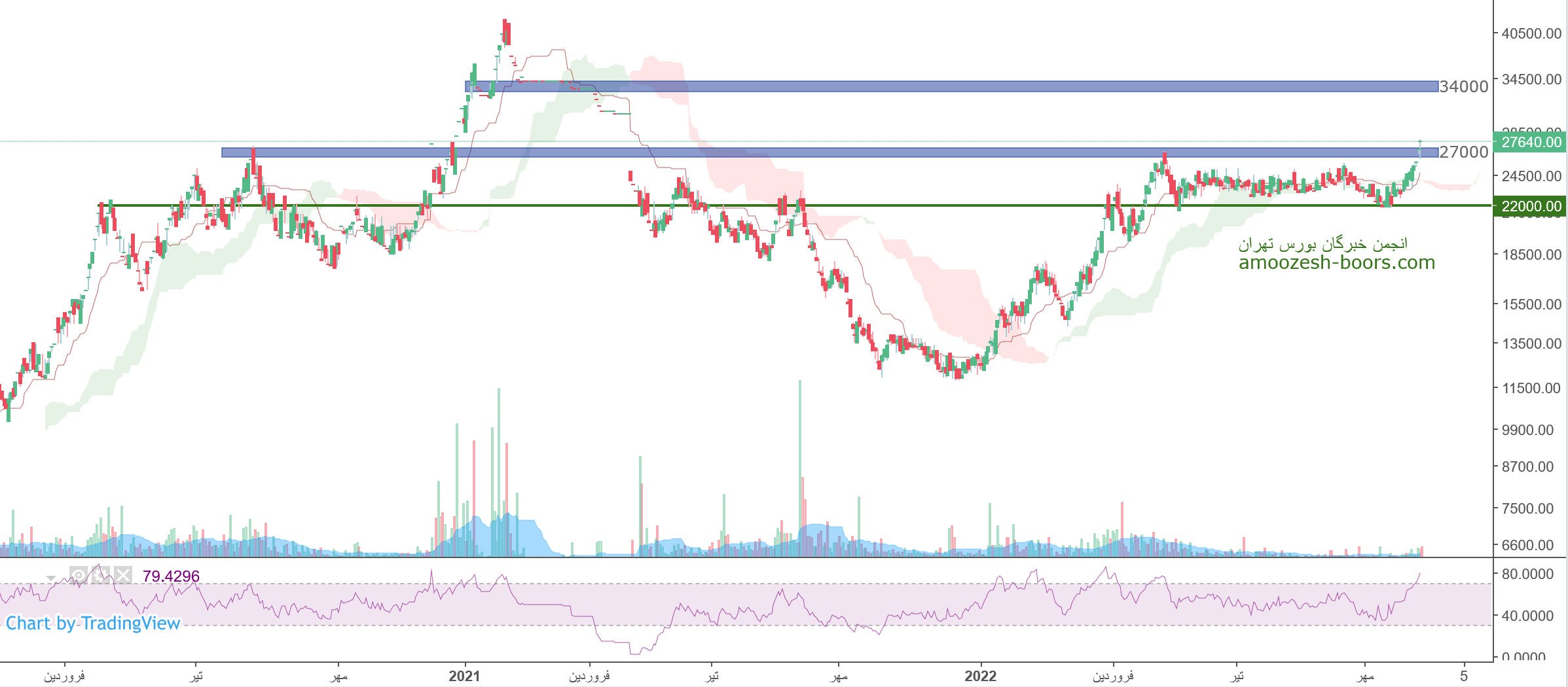 نماد پرداخت که در حال سپری کردن روز های خوبی روی چارت میباشد و در حال حاضر در حال پشت سر گذاشتن حمایت 27000 ریال است، در صورت تثبیت قیمت، حرکت سهم تا 34000 ریال محتمل خواهد بود، همچنین در صورت ورود سهم به فاز اصلاحی، اولین حمایت سهم پرداخت 22000 ریال در نظر گرفته خواهد شد.