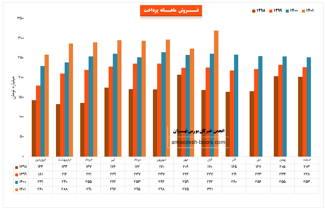 نماد پرداخت نسبت به دوره 1 ماهه مشابه سال قبل 12% افزایش درآمد داشته است.