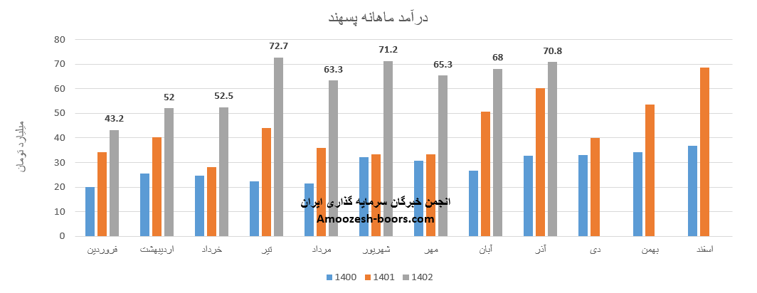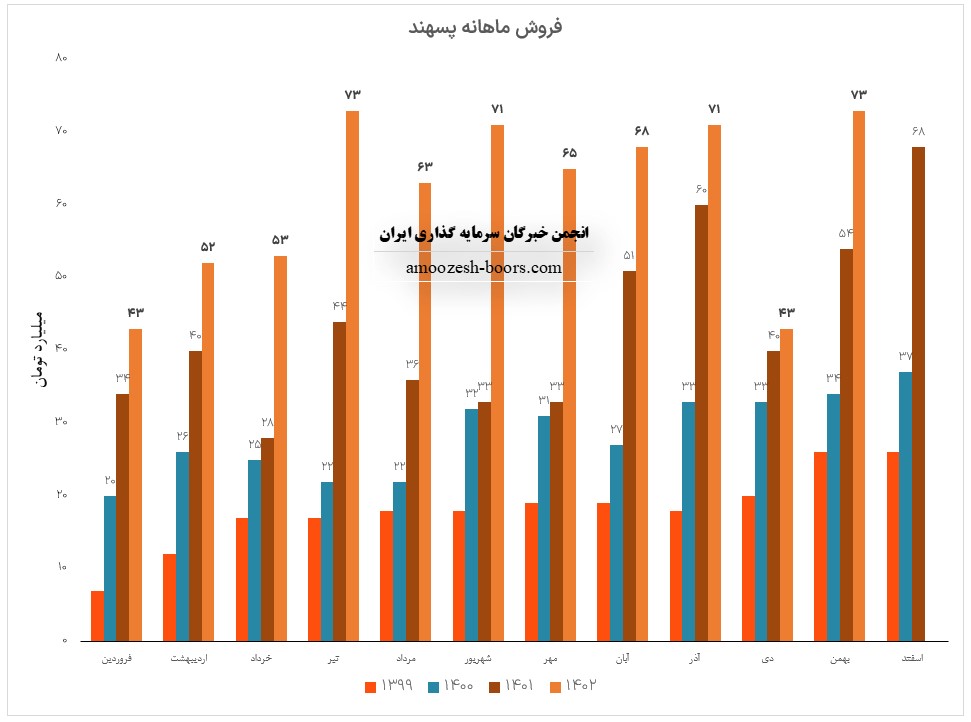 فروش آذر ماه سال 1402 سهم پسهند 70.8 میلیارد تومان گزارش شده است، تغییرات درآمدی پسهند به شرح زیر میباشد: