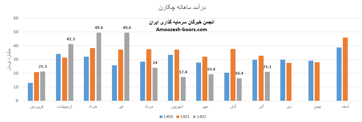 فروش آذر ماه سال 1402 سهم چکارن 21.1 میلیارد تومان گزارش شده است، تغییرات درآمدی چکارن به شرح زیر میباشد: