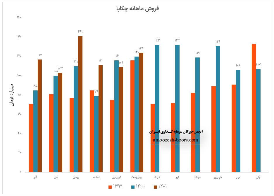 سهم چکاپا (شرکت گروه صنایع کاغذ پارس) در اردیبهشت ماه سال ۱۴۰۲ موفق به ثبت فروش 124 میلیارد تومانی شده است. لازم به ذکر است که درآمد این ماه نسبت به ماه گذشته رشد 14 درصدی همچنین و نسبت به مدت مشابه سال گذشته رشد 3 درصدی را تجربه کرده است.