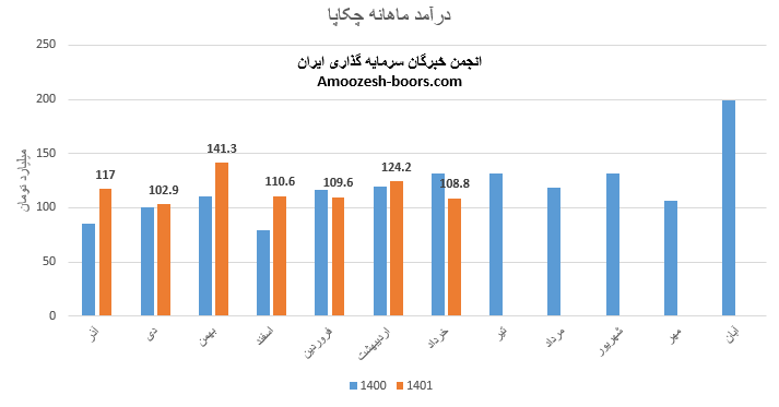 نماد چکاپا در عملکرد ماهانه، عملکرد ضعیفی در مرداد ماه سال 1402 به جای گذاشت و فروش 109.2 میلیارد تومان را گزارش نمود، فروش ماهانه سهم چکاپا در مقایسه با ماه گذشته 14%، نسبت به متوسط ماهانه 7% و نسبت به مدت مشابه 8% افت داشته است، علت افت فروش ناشی از کاهش مقدار فروش محصولات این شرکت گزارش شده است، سهم چکاپا سال مالی متفاوتی نسبت به همگروهیان داشته و طی 9 ماه از سال مالی صرفا 6% نسبت به مدت مشابه بهبود عملکرد داشته است و طی 9 ماه 74% از کل درآمد سال گذشته را محقق نموده است.