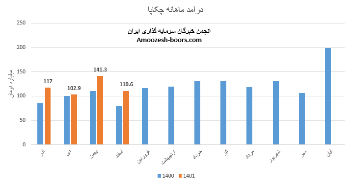 شرکت گروه صنایع کاغذ پارس در پنجمین ماه از سال مالی به دلیل تعطیلات نوروز عملکرد ضعیفی را به ثبت رساند، ثبت فروش 109.6 میلیارد تومانی که نسبت به ماه گذشته 1%، نسبت به متوسط ماهانه 7% و نسبت به مدت مشابه 6% کمتر است، علت افت فروش نسبت به ماه گذشته عدم فروش صادراتی گزارش شده است، مجموعا عملکرد سهم چکاپا 41% از درآمد سال گذشته را پوشش داده است.