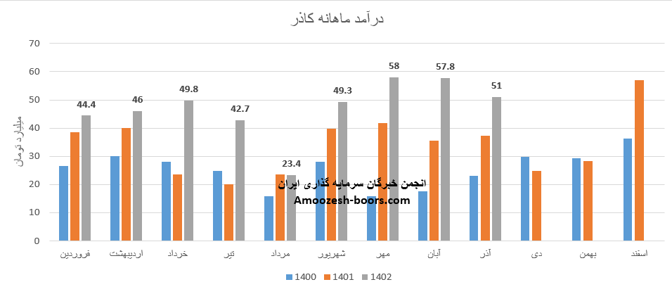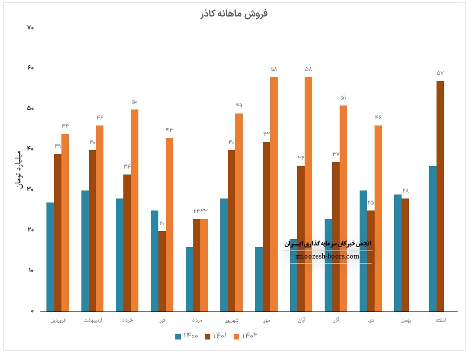 فروش آذر ماه سال 1402 سهم کاذر 51 میلیارد تومان گزارش شده است، تغییرات درآمدی کاذر به شرح زیر میباشد: