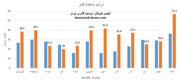 سهم کاذر با ثبت فروش ۴۲۱ میلیارد تومانی در پایان دوازده ماه منتهی به اسفند سال ۱۴۰۱ توانست حدود 92% از پیش بینی فروش سال گذشته خود را محقق سازند.