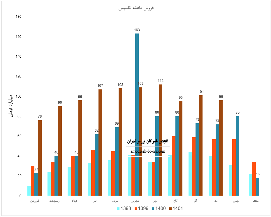 لازم ذکر است که سهم کاسپین در دی ماه حدود 104 میلیارد تومان فروش داشته است که از این میزان حدود 7 میلیارد تومان مجموعه تخفیفات و جمع برگشت از فروش شرکت بوده است که از مبلغ فروش کم شده است.
