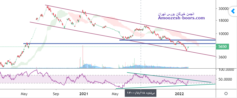 قیمت با ایجاد واگرایی به کف کانال نزولی خود واکنش مثبت نشان داده و مقاومت های 6300 و 7300 تا تست سقف کانال بر سر راه سهم قرار دارد . در صورتیکه قیمت در کندل بعدی وارد فاز اصلاحی شود تا اولین سطح حمایتی 10 درصد فاصله قیمتی داشته و حد ضرر را فعال مینماید .