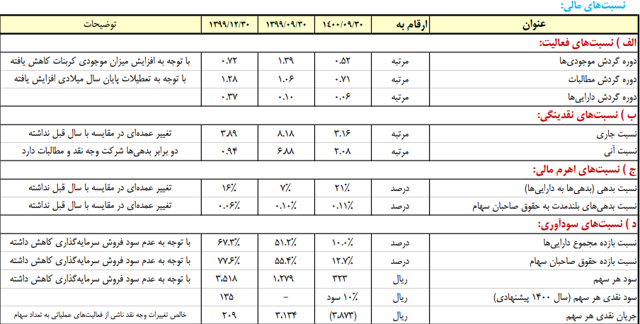 همچنین توضیحات شرکت در خصوص سایر تغییرات در نسبت های مالی دوره 9 ماهه به شرح زیر میباشد :
