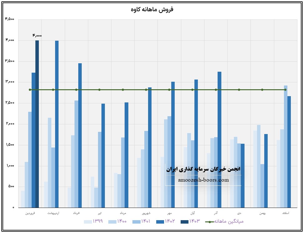 نماد کاوه در فروردین ماه مجموعا حدود 190 هزار تن فروش داخلی و فروش صادراتی داشته است که در مقایسه با حجم فروش ماه گذشته حدود 41% رشد داشته است.