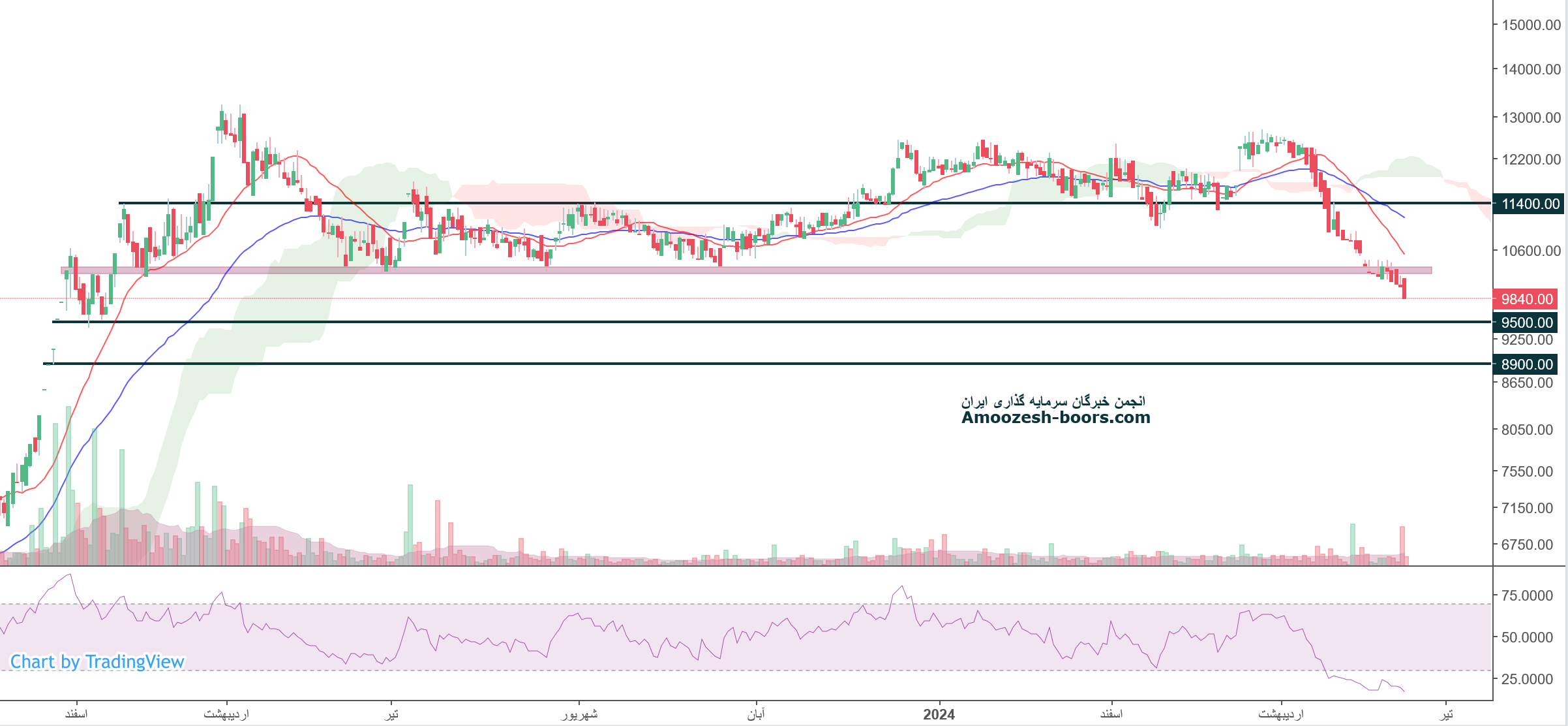 با بررسی که روی نمودار تکنیکال نماد کاوه داشتیم، قیمت سهم با اصلاحی که داشته محدوده حمایتی رو از دست داده است، در صورت ادامه دار شدن اصلاح، 9500 ریال حمایت بعدی نماد هرمز خواهد بود، همچنین در صورت تثبیت و بازگشت قیمت، 11400 ریال مقاومت بعدی هرمز خواهد بود.