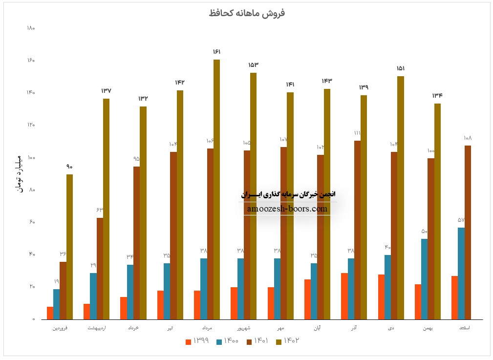 فروش کحافظ در این ماه کاهش 1% در مقایسه با ماه گذشته داشته است، همچنین در مقایسه به مدت مشابه 23% افزایش و نسبت به متوسط ماهانه 4% کاهش داشته است .