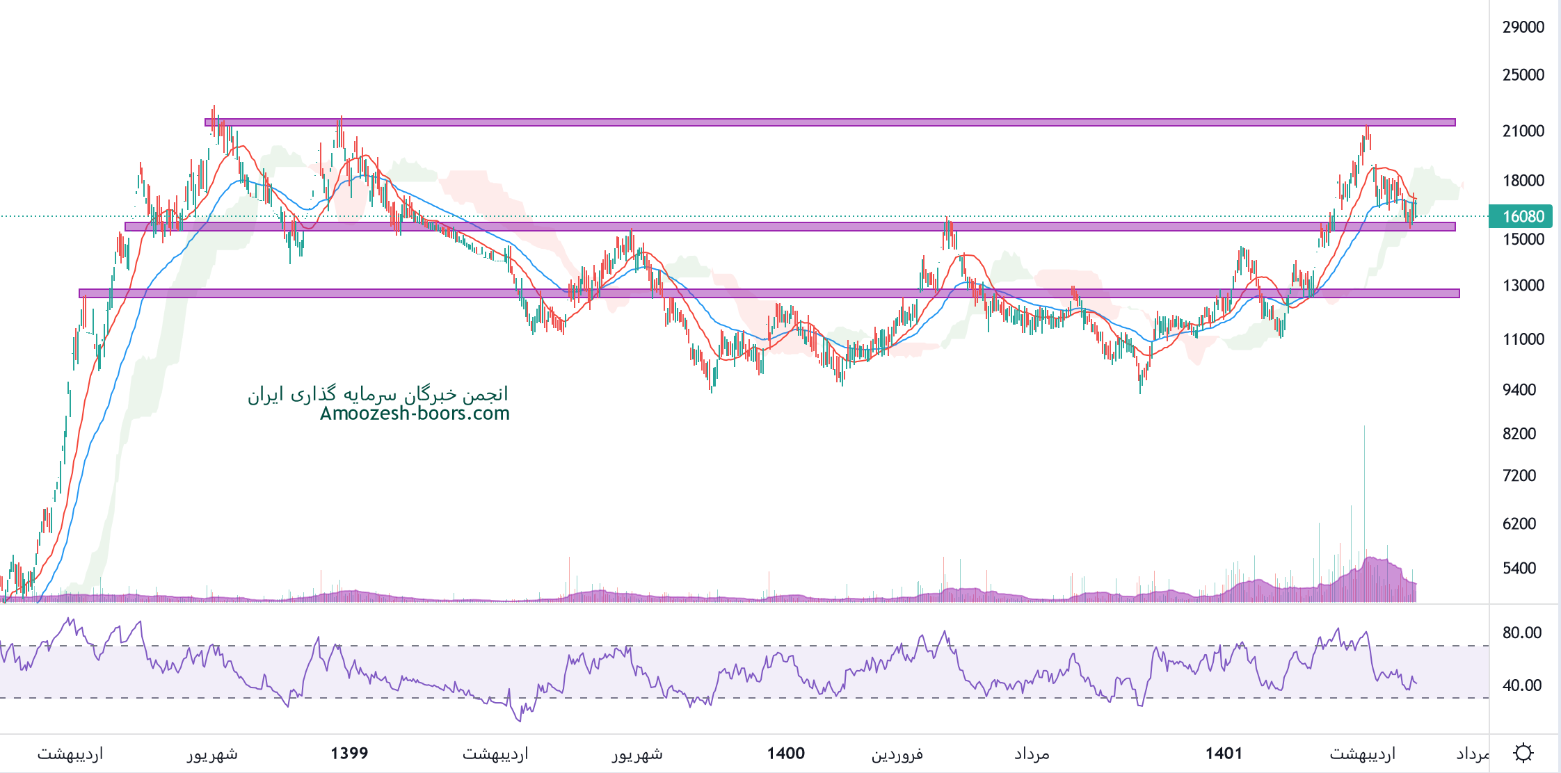 نماد کخاک به محدوده حمایتی 15500 ریال واکنش مثبت نشان داده، در صورت تثبیت قیمت و ایجاد کندل های برگشتی، تارگت سهم کخاک محدوده 22000 ریال ارزیابی میگردد، همچنین در صورت از دست رفتن محدوده حمایتی ذکر شده، اصلاح قیمت کخاک تا محدوده 13000 ریال محتمل خواهد بود، در صورت تمایل به ورود به حد ضرر پایبند باشید.
