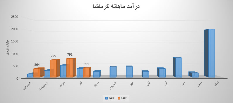 فروش نماد کرماشا: 6111 میلیارد تومان که نسبت به دوره مشابه گذشته 154% افزایش یافته است.