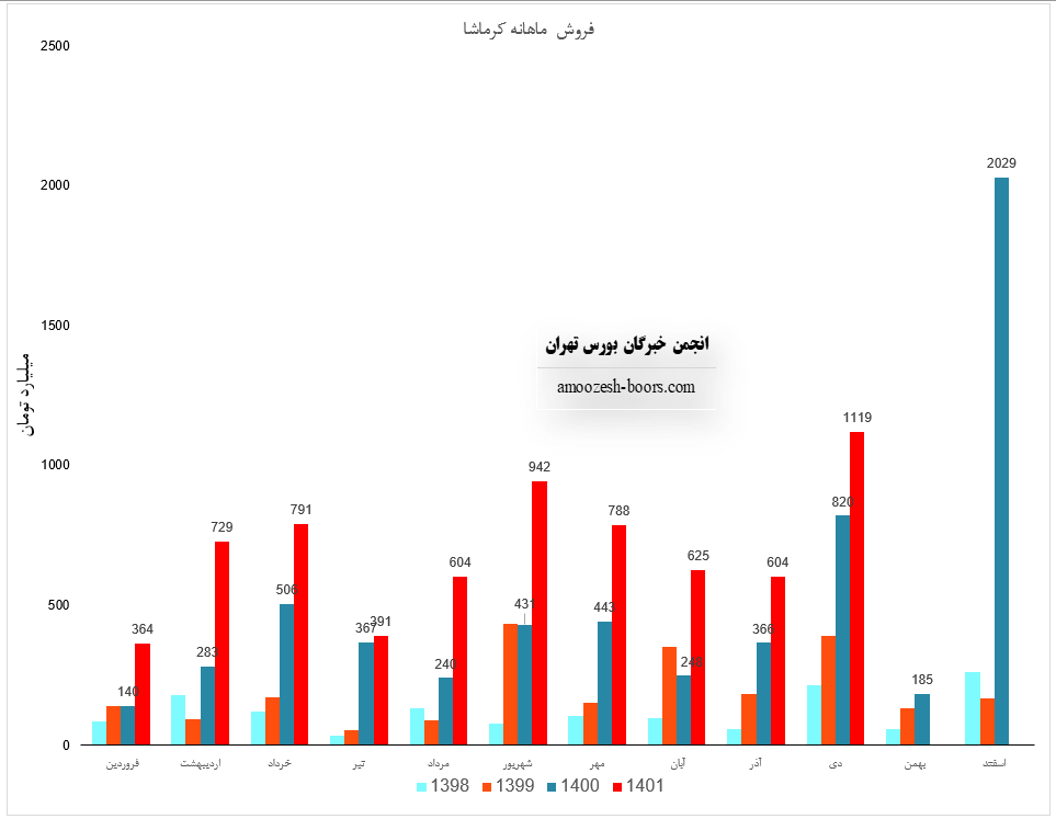 فروش نماد کرماشا: 5677 میلیارد تومان که نسبت به دوره مشابه گذشته 85% افزایش یافته است.