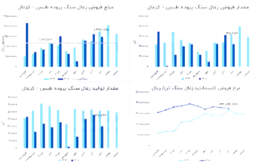 درآمد شرکت در این دوره نسبت به ماه قبل 36.85% افزایش و نسبت به میانگین ماه های قبل 34.85% افزایش داشته است. شرکت نسبت به دوره 1 مشابه سال قبل 1.5% کاهش درآمد داشته است.مقدار فروش شرکت در اسفند نسبت به بهمن رشد 32 درصدی تجربه کرد. نرخ فروش کنسانتره زغال سنگ در این ماه برابر با 3.6 میلیون تومان در هر تن گزارش شده است که تقریبا 2 درصد بیشتر از ماه بهمن می باشد.