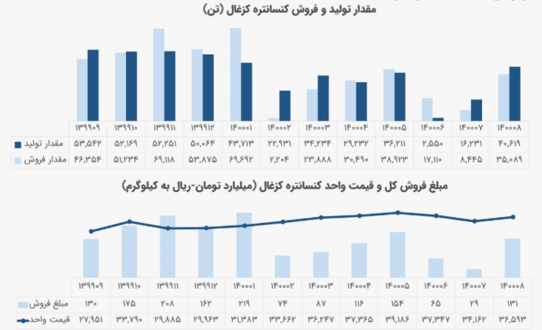 با وجود رشد تولید نسبت به شهریور، فروش افت داشته و با 43 درصد کاهش از 25 به 10 هزار تن رسیده است. نرخ فروش هر تن کنسانتره هم 9 درصد نسبت به شهریور و 3 درصد نسبت به میانگین ماههای قبل افت داشته است.