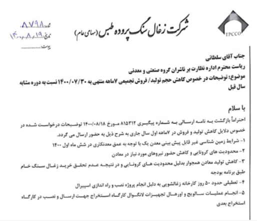شرکت عوامل تاثیر گذار در کاهش تولید در گزارشات7 ماهه را شفاف سازی نموده است که به شرح زیر میباشد .