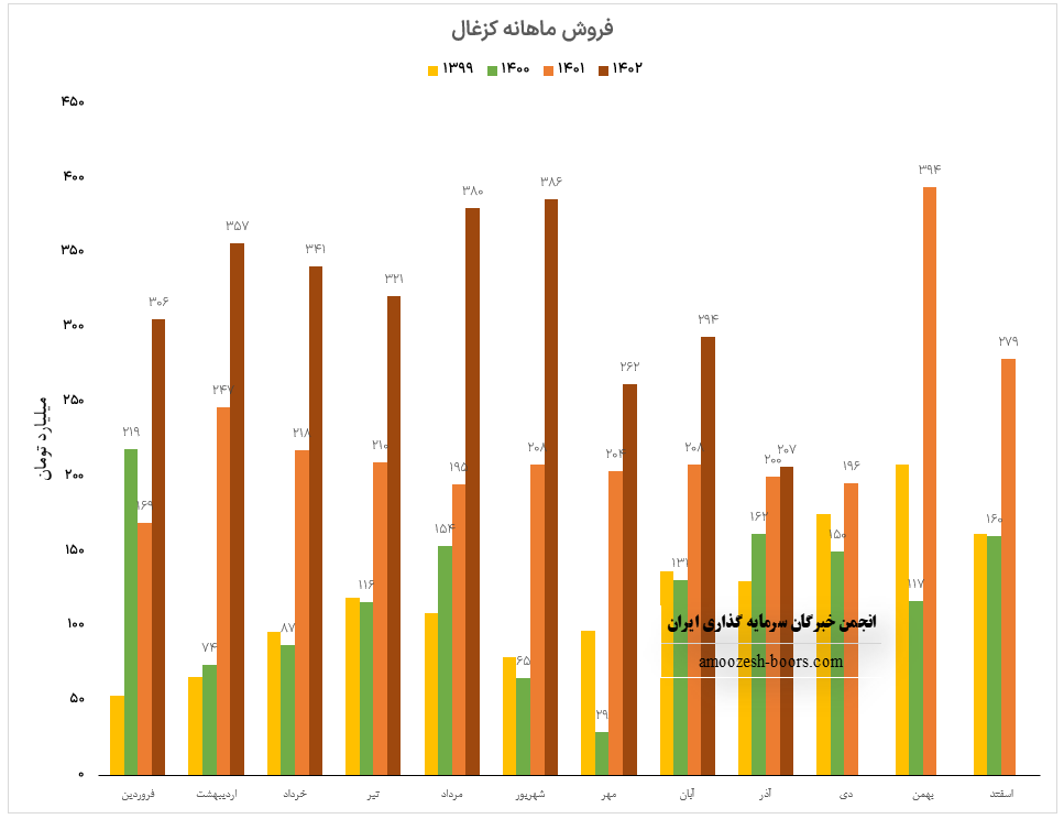 درآمد عملیاتی سهم کزغال : 54% رشد