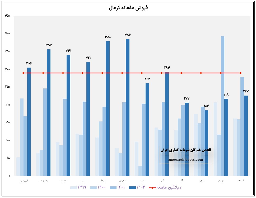کزغال در اسفند ماه حدود بیش از 39900 تن از محصولات خود را به فروش رسانده که این میزان در مقایسه با حجم فروش ماه گذشته خود حدود 7 درصد کاهش پیدا کرده است.