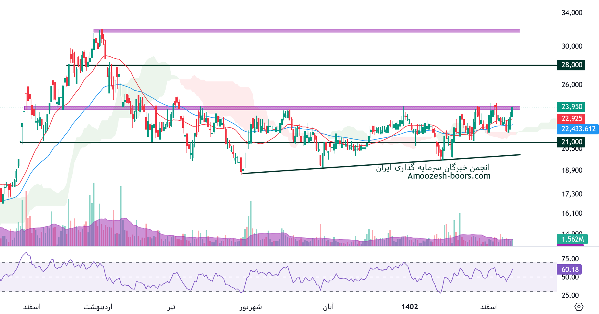 در حال حاضر قیمت نماد کزغال به محدوده مقاومتی 25000 ریال رسیده است، در صورت ادامه دار شدن فشار تقاضا و عبور قیمت از این محدوده حرکت سهم کزغال تا محدوده 28000 ریال دور از ذهن نخواهد بود، همچنین در صورت ورود قیمت به فاز اصلاحی، اولین حمایت کزغال 21000 ریال ارزیابی میگردد.