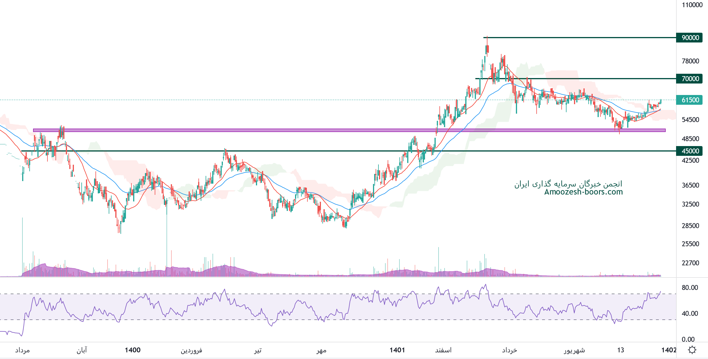 تحلیل تکنیکال سهم کساوه نشان میدهد که قیمت در محدوده مقاومتی 70000 ریال و حمایتی 50000 ریال در حال نوسان میباشد، در صورت شکست هر یک از سطوح، مقاومت بعدی سهم کساوه محدوده 90000 ریال و در صورت ایجاد فشار فروش حمایت بعدی کساوه 45000 ریال در نظر گرفته میشوند.