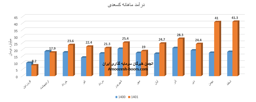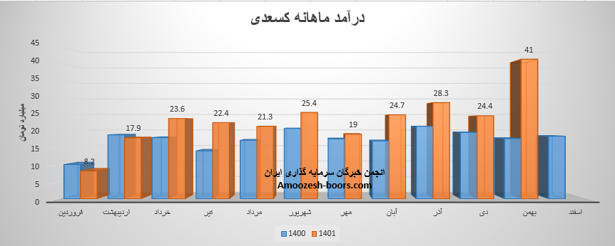 نماد کسعدی در بهمن ماه سال 1401 به درامد 41 میلیارد تومانی دست یافت، 45% از این درآمد از طریق فروش صادراتی و مابقی از طریق فروش داخلی تامین گردید، مقدار تولید کاشی کف داخلی نسبت به ماه گذشته کاهش 10 درصدی داشته اما در مقدار و نرخ فروش این محصول شاهد افزایش 9 درصدی هستیم، همچنین مقدار فروش کاشی کف صادراتی افزایش 209 درصدی داشته، این در حالی است که در میزان تولید و نرخ فروش این محصول نسبت به ماه قبل تغییر ایجاد نشده است، مجموع درآمد سهم کسعدی طی عملکرد 11 ماهه رشد 33 درصدی را تجربه نموده است.
