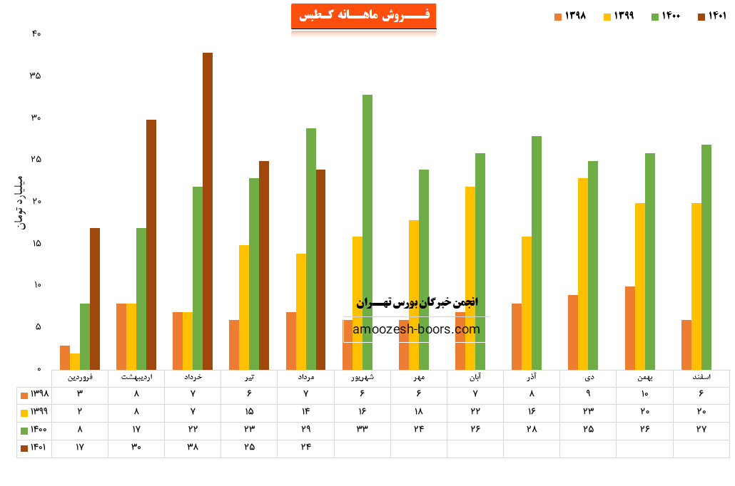 کطبس در مرداد ماه حدود بیش از 19100 تن از محصولات خود را به فروش رسانده که این میزان در مقایسه با حجم فروش ماه گذشته خود تغییری نداشته است