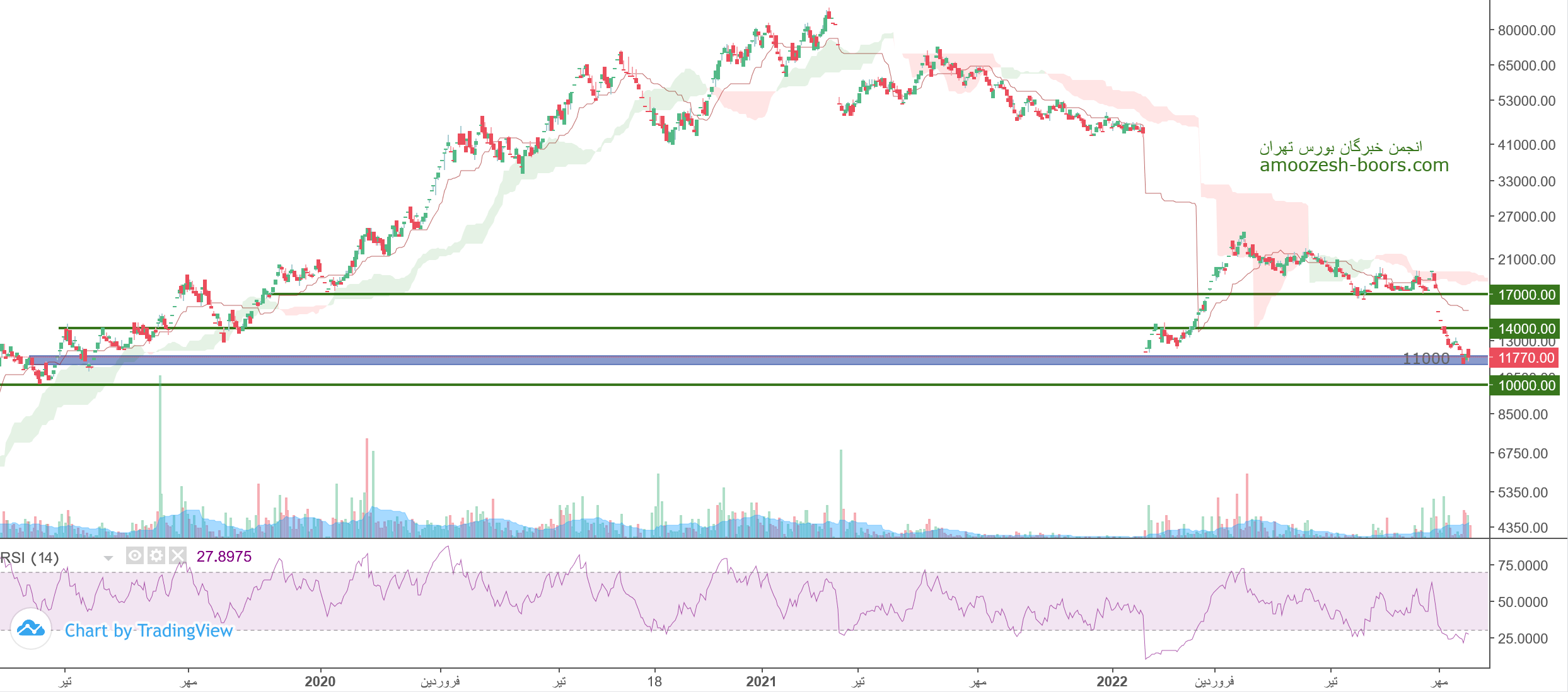 کطبس به حمایت 11000 ریال واکنش نشان داده، در صورت تثبیت در این ناحیه و حرکت سهم اولین مقاومت سهم 14000 ریال در نظر گرفته خواهد شد، همچنین در صورت از دست رفتن این حمایت و ادامه دار شدن اصلاح، حمایت بعدی 10000 ریال در نظر گرفته خواهد شد.