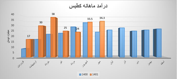 شرکت کطبس (زغال سنگ نگين طبس) در آبان ماه ۱۴۰1 حدود مبلغ 35 میلیارد تومان درآمد داشته که این میزان در مقایسه با ماه گذشته 3% و همچنین در مقایسه با مدت مشابه سال گذشته 35% افزایش درآمد پیدا کرده است.