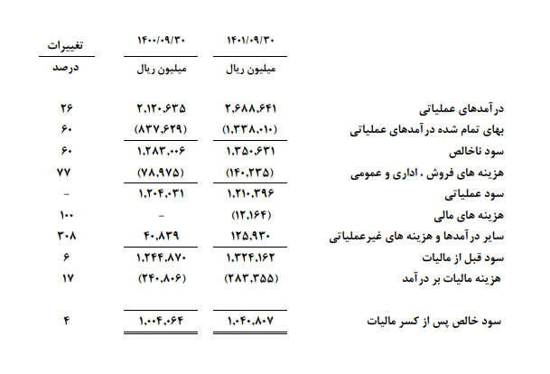 میزان تولید شرکت ذغالسنگ نگین طبس در 9 ماهه ابتدایی سال 1401 با رشد 55 درصدی به 203420 تن رسیده است، مبلغ فروش نیز 27% نسبت به 9 ماهه مشابه افزایش داشته، که ناشی از افزایش نرخ فروش محصول اصلی بوده است، همچنین بهای تمام شده کالای فروش رفته 60% افزایش داشته است که دلیل عمده آن افزایش نرخ عوامل هزینه شرکت ذغالسنگ نگین طبس میباشد، درآمد های عملیاتی نماد کطبس در دوره 9 ماهه 27%، سود ناخالص 5% و سود خالص افزایش 7 درصدی داشته است، با توجه به افزایش بهای تمام شده و رشد هزینه های مالی سود عملیاتی سهم کطبس بدون تغییر نسبت به مدت مشابه بوده است و نشان از کاهش سود سازی و عدم موفقیت مدیریت در ایجاد سود از عملیات جاری شرکت شده است و این نسبت افت 21 درصدی را تجربه نموده، همچنین ROE سهم کطبس افت 36% و ROA افت 39% داشته است و به ترتیب به 39 و 23 درصد رسیده اند.