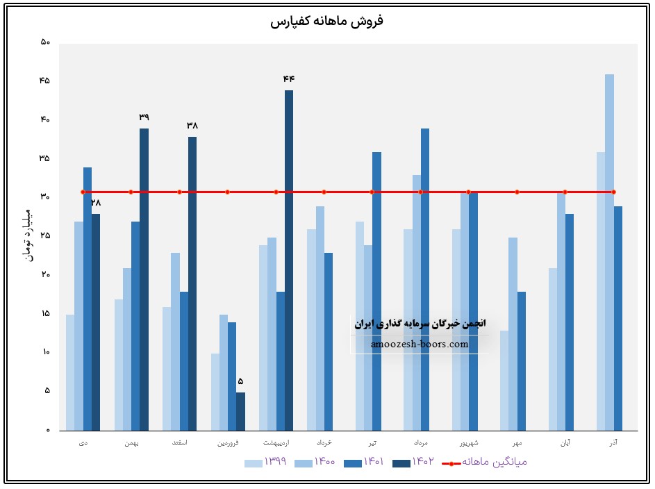 سهم کفپارس با ثبت فروش 154 میلیارد تومانی در پایان 5 ماهه ابتدایی سال مالی خود توانست تنها 31 درصد از پیشبینی فروش سالانه خود را محقق سازد!