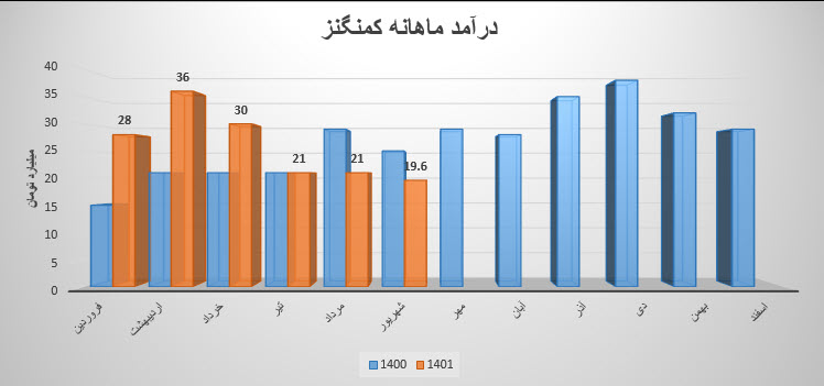 کمنگنز نسبت به دوره 1 ماهه مشابه سال قبل 22% کاهش درآمد داشته است.