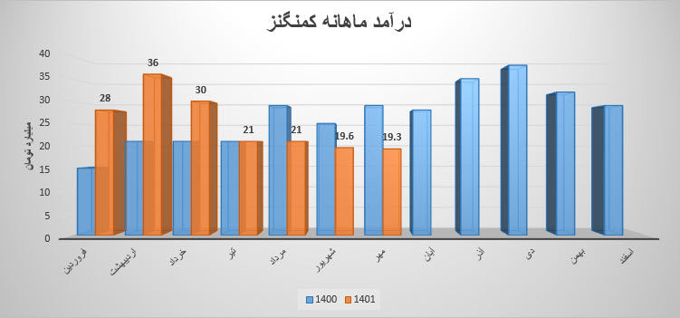 شرکت کمنگنز (معادن منگنز ایران) در آبان ماه ۱۴۰1 حدود مبلغ 34 میلیارد تومان درآمد داشته که این میزان در مقایسه با ماه گذشته 79 درصد و همچنین در مقایسه با مدت مشابه سال گذشته 21 درصد افزایش پیدا کرده است.