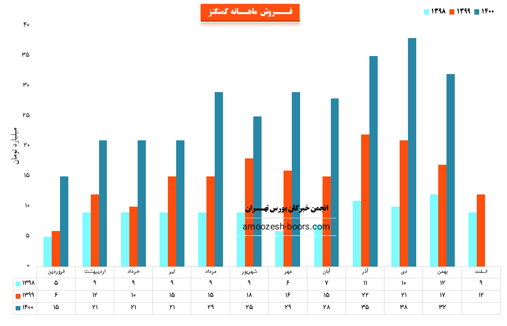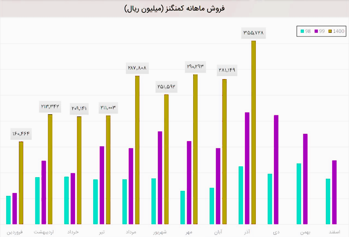 کمنگنز در آذر 36 میلیارد تومان فروش ثبت کرد که نسبت به ماه قبل 29% و نسبت به میانگین درامد ماهانه 8 ماه ابتدای سال 42% بیشتر بوده است.