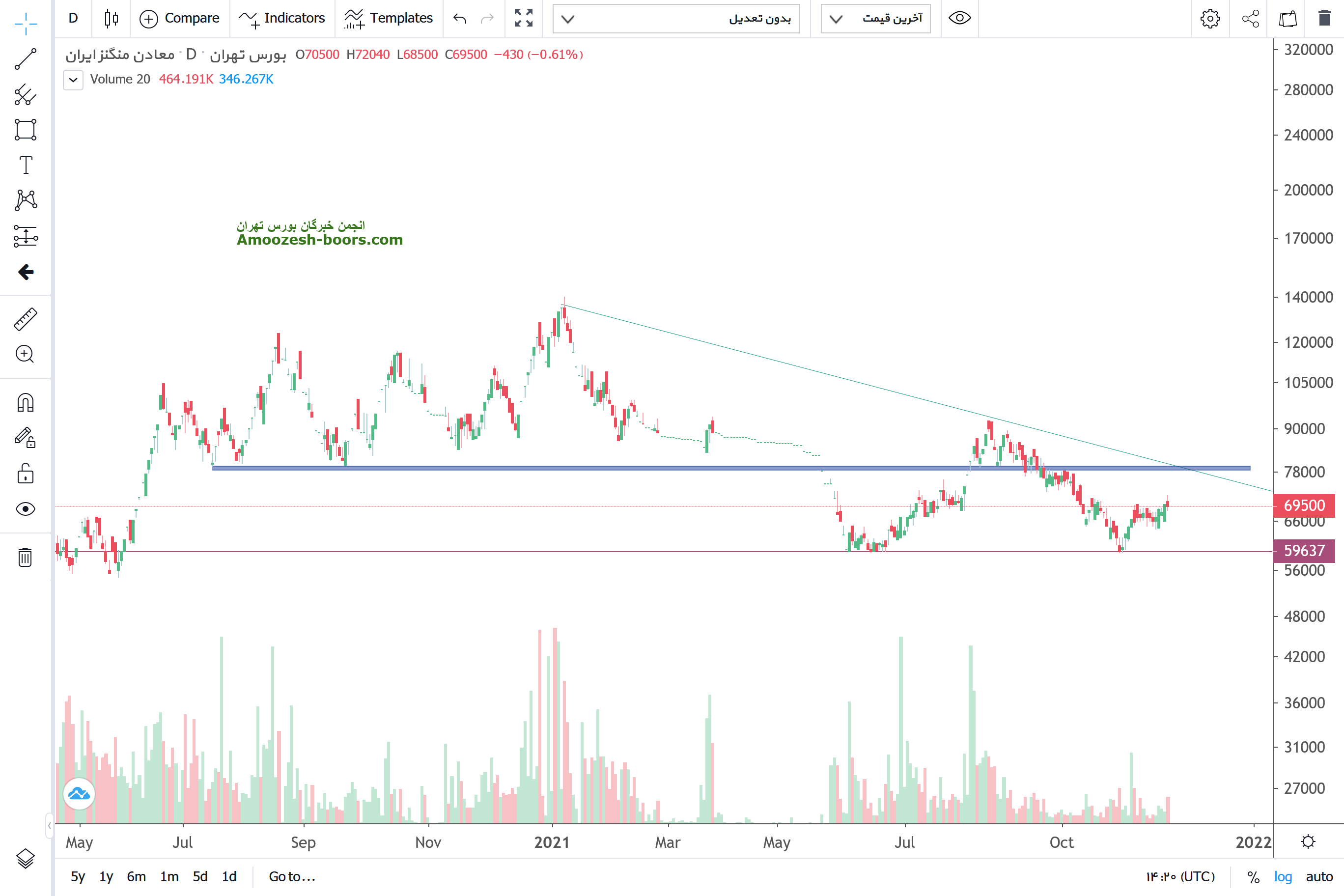 در حال حاضرسهم در حال تکمیل اصلاح قیمتی خود بوده و از قدرت فروشندگان سهم نیز کاسته شده است. انتظار میرود قیمت به سطح حمایتی60000 واکنش مثبت نشان دهد و سهم مجدداً به تثبیت خود باز گردد.در صورت افزایش فشار فروش و از دست رفتن این سطح ، 55000 نزدیک ترین منطقه حمایتی در نظر گرفته شده و در صورت تثبیت مقاومت های67 و 74 و 80 هزار ریال به ترتیب بر سر راه سهم قرار دارند و مانع از ادامه حرکت صعودی خواهند شد . رعایت حدضرر ۶،۷۰۰ تومان توصیه میگردد.