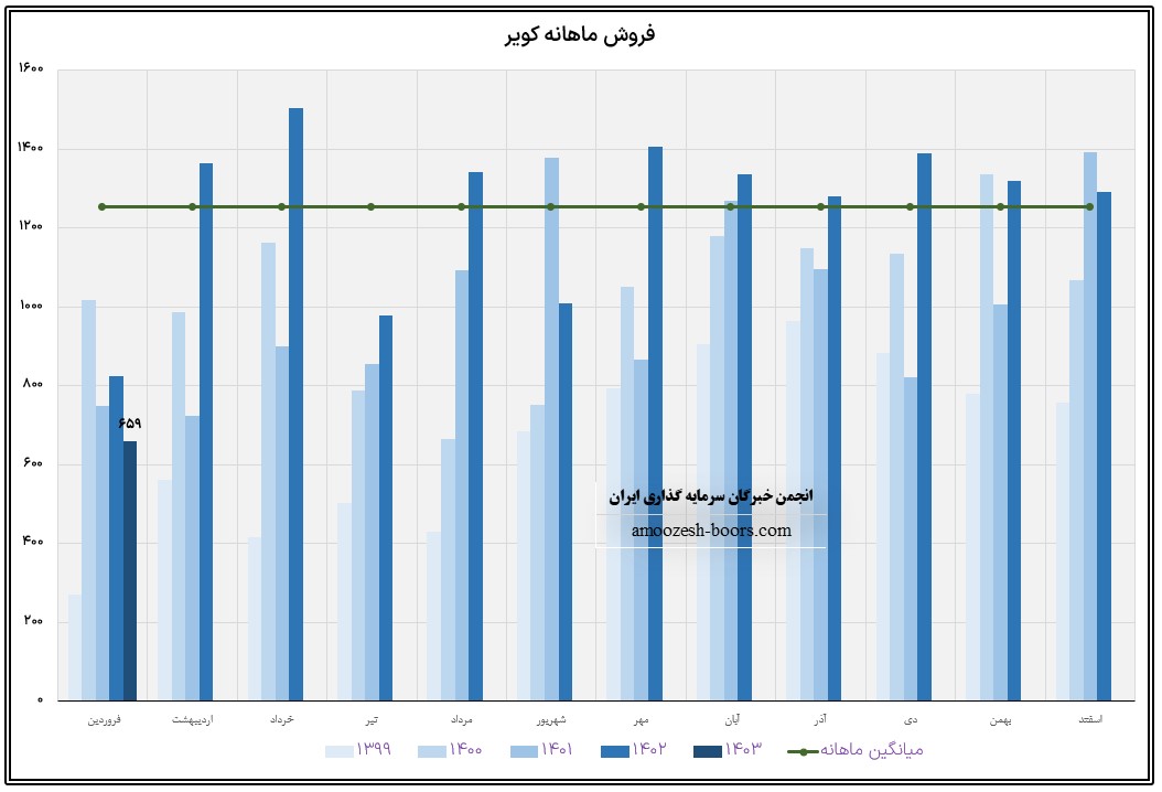 نماد کویر (شرکت توليدي فولاد سپيد فراب کوير) در فروردین ماه سال 1403 حدود مبلغ 659 میلیارد تومان درآمد داشته که این میزان در مقایسه با ماه گذشته 49% و همچنین در مقایسه با مدت مشابه سال گذشته 20% افت پیدا کرده است.