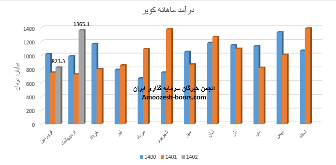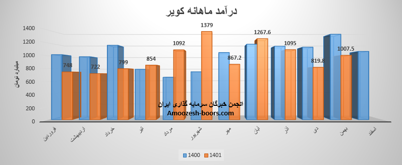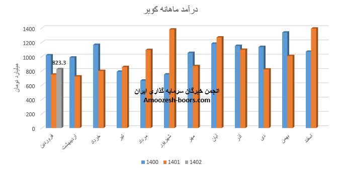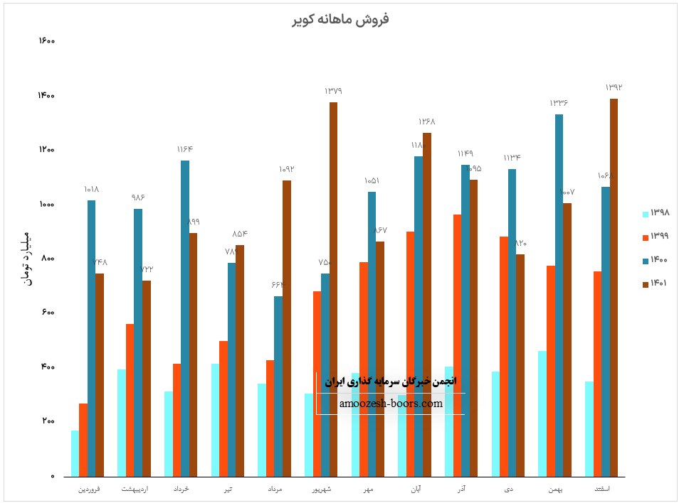 نماد کویر (شرکت توليدي فولاد سپيد فراب کوير) در اسفند ماه سال ۱۴۰1 حدود مبلغ 1392 میلیارد تومان درآمد داشته که این میزان در مقایسه با ماه گذشته 38% و همچنین در مقایسه با مدت مشابه سال گذشته 30% رشد پیدا کرده است.