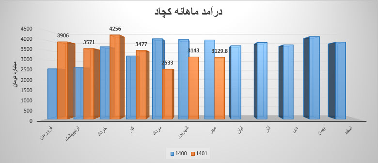 کچاد نسبت به دوره 1 ماهه مشابه سال قبل 22% کاهش درآمد داشته است.