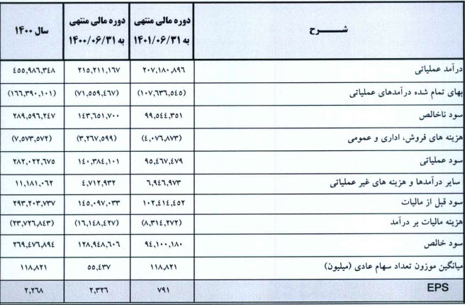حاشیه سود ناخالص شرکت نیز، 48 درصد بوده است که این عدد در 6ماهه سال 1400 حدود 67 درصد بوده است. همچنین سایر تغییرات با اهمیت به شرح زیر میباشد :