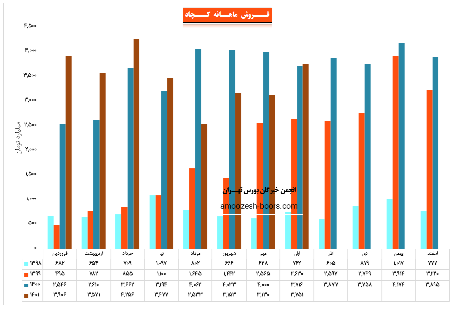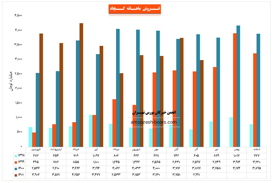 کچاد در آذر ماه حدود بیش از 1/200/000 تن از محصولات خود را به فروش رسانده که این میزان در مقایسه با حجم فروش ماه گذشته خود حدود 25% کاهش پیدا کرده است.
