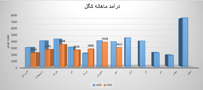 کگل نسبت به دوره 1 ماهه مشابه سال قبل 6% کاهش درآمد داشته است.