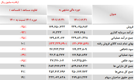 سود ناخالـص: 3472 میلیارد تومان که نسبت به دوره مشابه گذشته 61% کــــاهش یافته است.